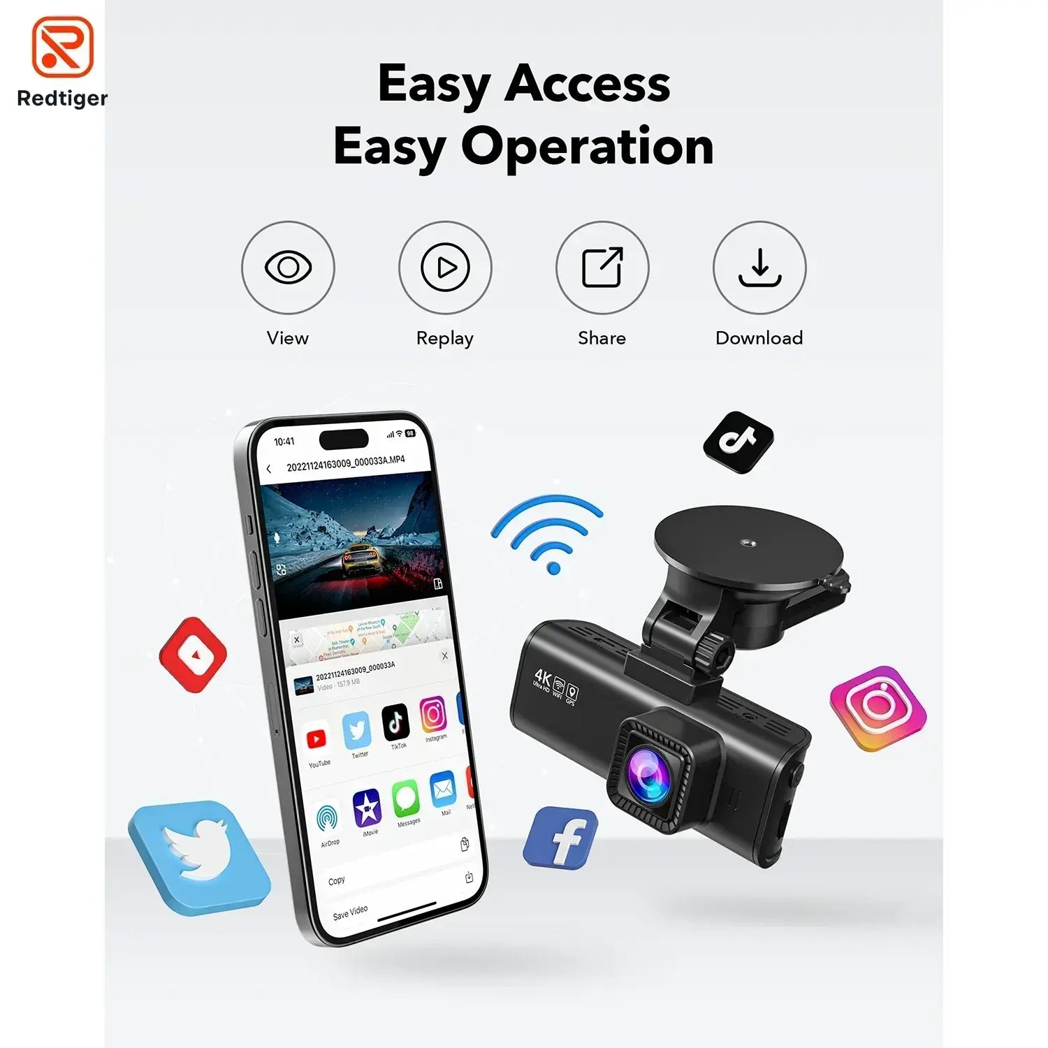 Download the exclusive app REDTIGER, turn on dash cam wifi, then connect it.