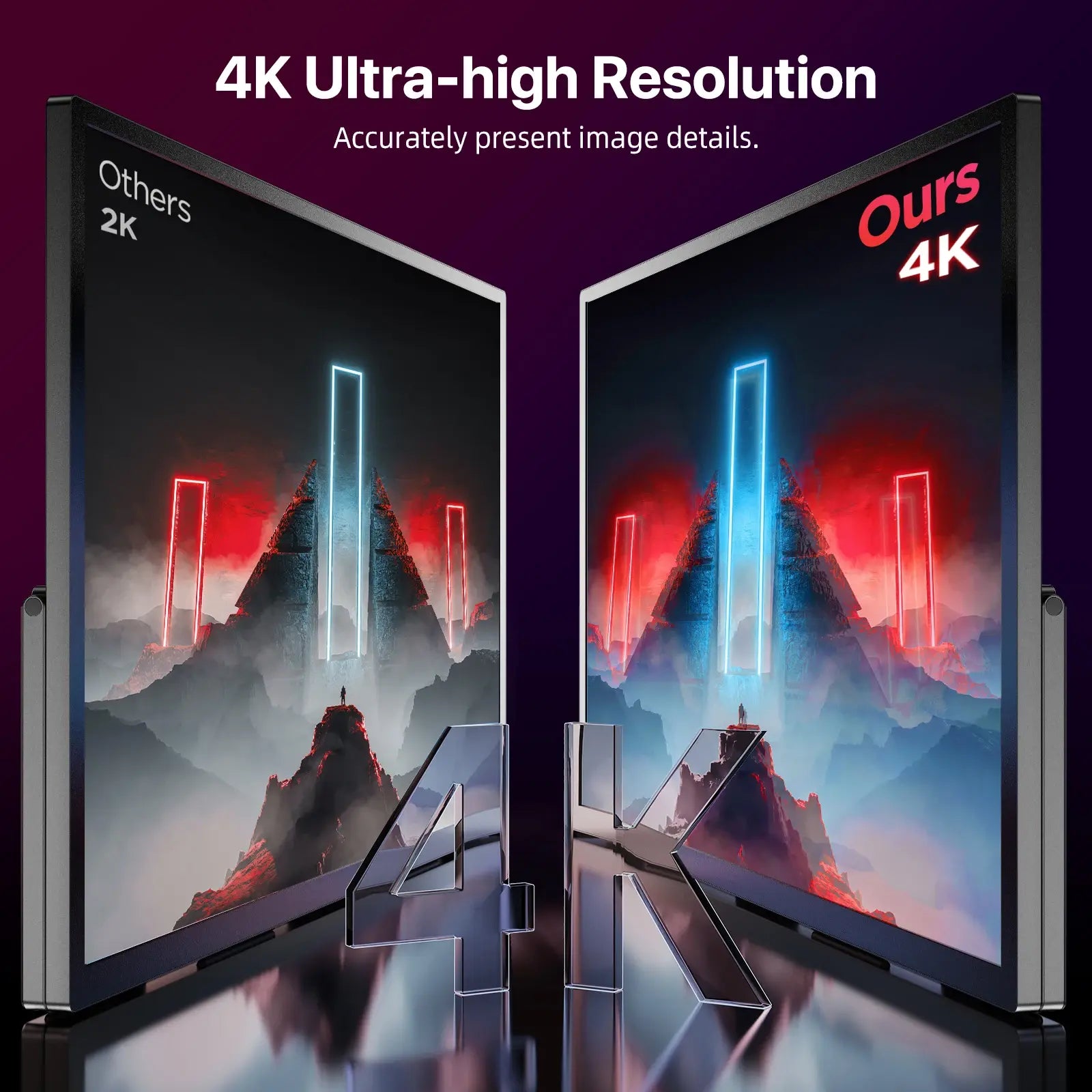 [Enjoy A Billion Colors with Incredible Depth] Explore and immerse yourself in every detail. With 4x the pixels of Full HD, every detail is viewed in enhanced depth, while more screen real estate provides space to view multiple tools, applications, and programs during the day – creating a 4K gaming content viewing experience night and day. With 100% sRGB color gamut, 4K 18 inch large gaming monitor can display more colors, and there is no pressure even in design creation.